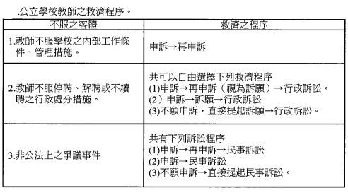 按最高行政法院98年7月第1次法官庭長聯席會議之決議見解,其認為公立學校係各級政府依法令設置實施教育之機構,具有機關之地位(釋字第382號解釋理由書)。而公立學校教師之聘任,為行政契約。