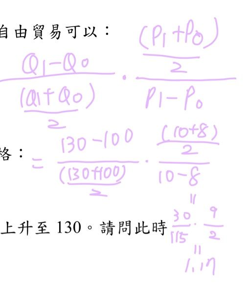 3 假設價格 10 元時的需求量為 100,當價格下跌至 8 元,需求量上升至 130。請問此時需求的弧彈性為何?