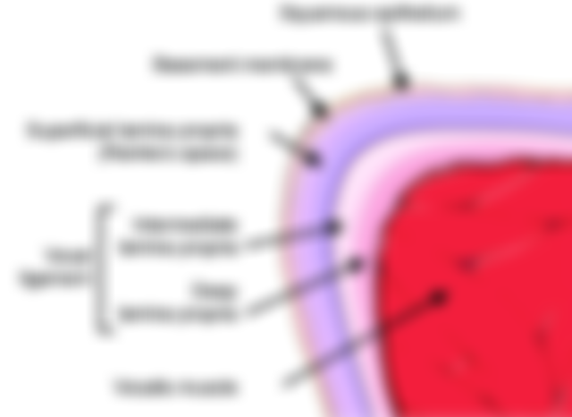 (A)聲帶黏膜固有層(lamina propria)的淺層部分,疏鬆柔軟又稱為 Reinke's space,振動最明顯