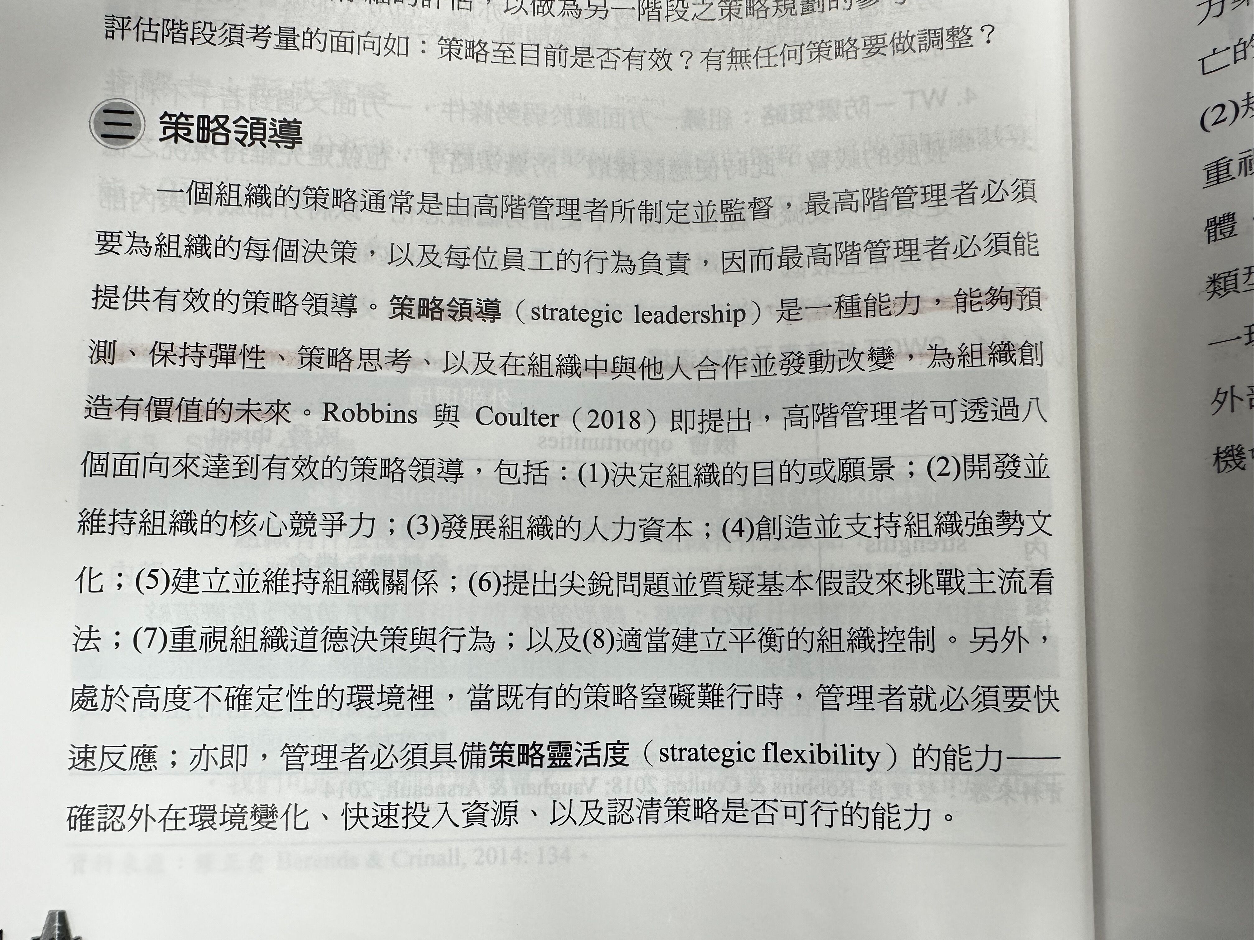 3 面對高度不確定性的環境裡,當既有的策略窒礙難行時,管理者必須具備策略靈活度,下列何者