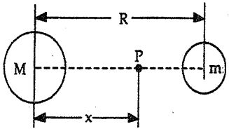 3 Two planets have masses M and m, and the ratio M/m=25. The distance between the planets is R. The point P is between the planets, and the distance between M and P is x. At P, the gravitational force on an object due to M and m are equal in magnitude. The value of x is