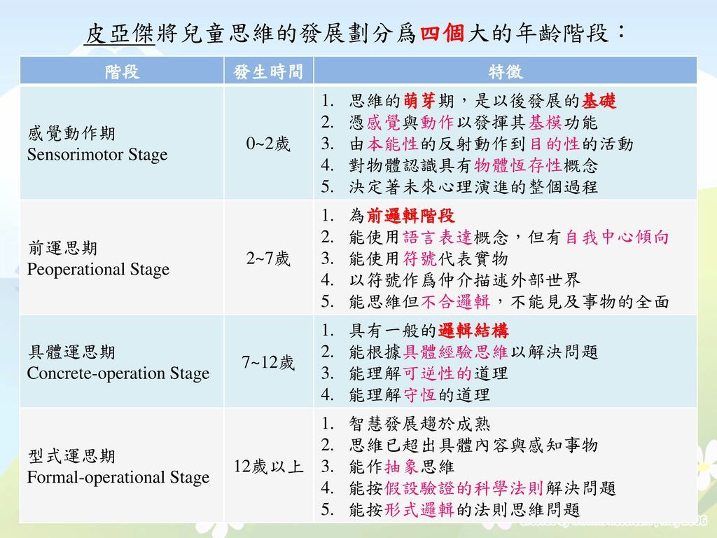 3. 自我中心:只以自我觀點去思考,不考慮他人觀點,如三山實驗