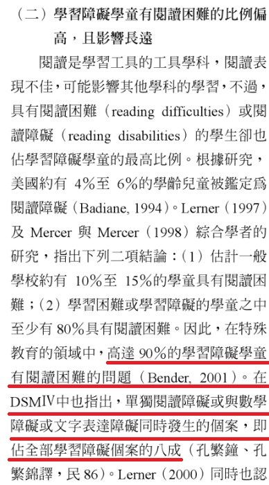 (A)閱讀困難者約占學習障礙者的 65%-70%