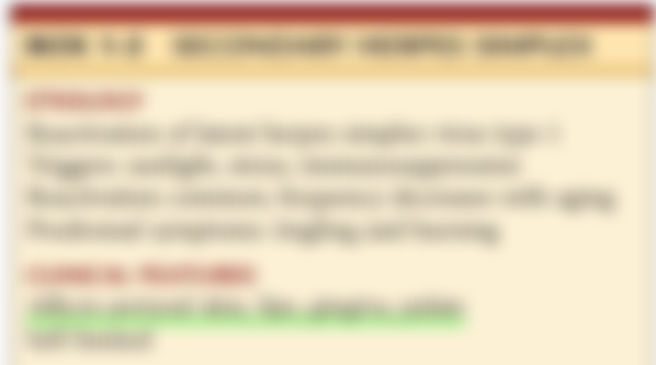 3.關於第一型單純疱疹感染所引起的病症之敘述,下列何者正確?