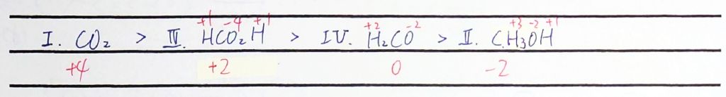I. CO2 II. CH3OH III. HCO2H IV. H2CO