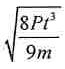 3. An object of mass m is initially at rest on a frictionless horizontal plane. If a constant power P acts on this object for t duration, how far will it travel during this interval?