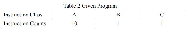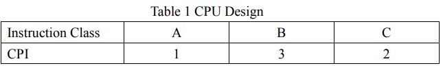 3. For a specific CPU design, there are three instruction classes as depicted in Table 1 and run at a clock rate of 100 MHz.