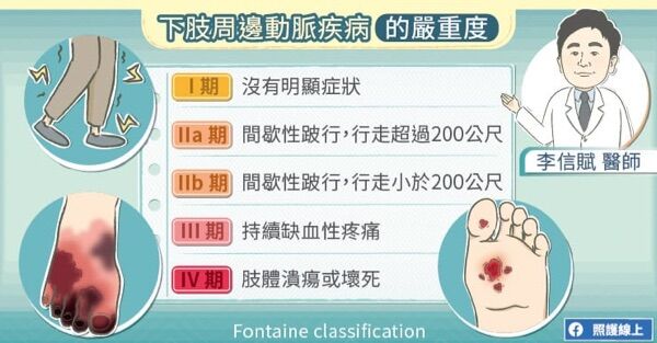 周邊動脈阻塞疾病的臨床表現,一般可分為四...