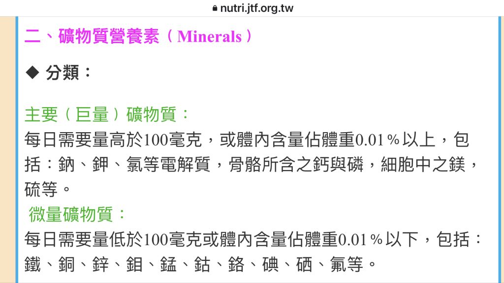 (C)占體內礦物質總含量的 10%以下 1%以下