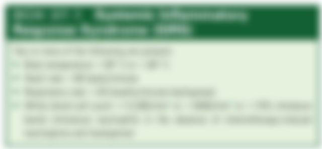 4.白血球計數>12,000 個/mm3 或<4,000 個/mm3 5. Bandemia桿狀顆粒細胞增多症:未成熟的嗜中性球>10%