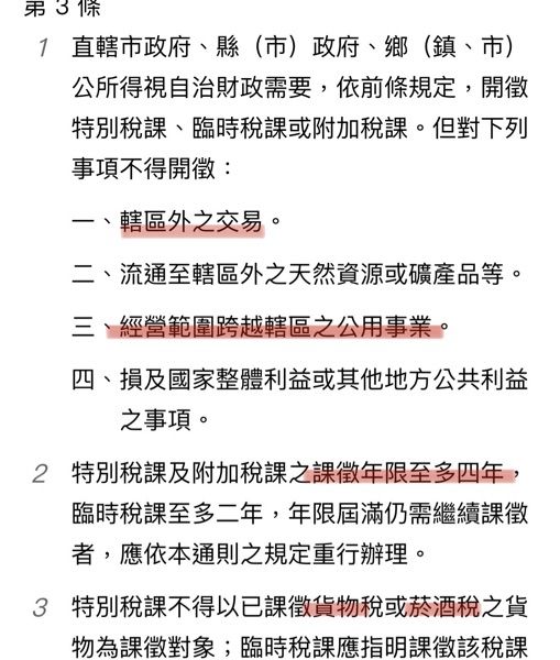 18 地方稅法通則授權地方政府得研議開徵特別稅課、臨時稅課、附加稅課與調整地方稅率,但亦有 多項不得開徵和法定限制,下列敘述何者錯誤?