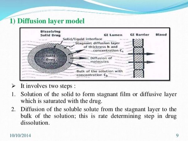 FC tab溶離速率決定步驟:可溶性藥物從停滯層擴散到溶液