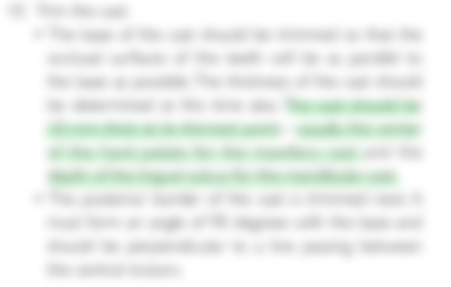 (D)主模型在上顎硬腭中心點與下顎舌側口底最深處的模型基底至少要保有15 mm以上厚度