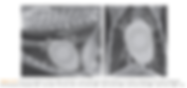 30.飼主門診帶來一隻11歲齡雌性馬爾濟斯犬,主訴於近日開始出現咳嗽症狀,主治醫師於身體檢查後進行右側躺胸腔X光影像如圖,其中紅色虛線為氣管及主支氣管而紅色區塊為異常擴大之部分,此異常為下列何項?