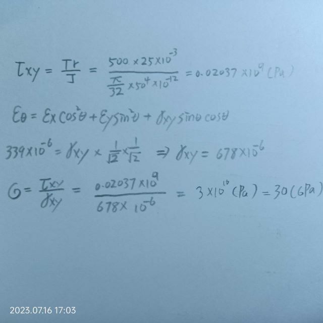 試求此材料的剪力模數(Shear modulus)值最接近下列何者?