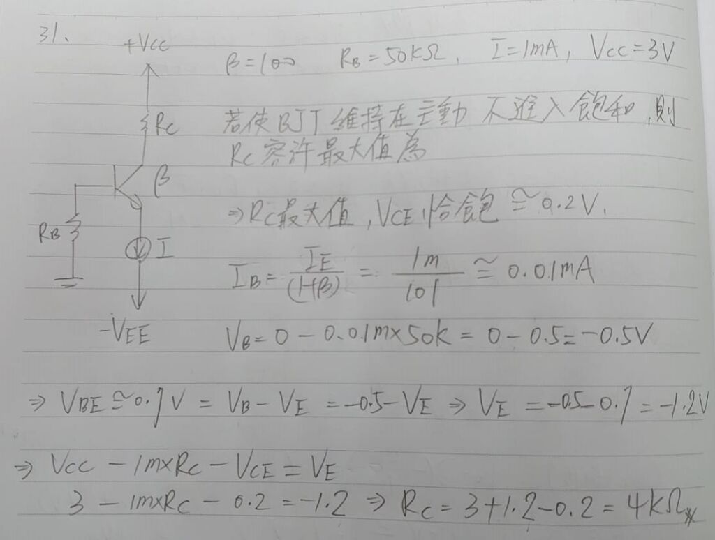 31 如圖電路,設電晶體之 β = 100,