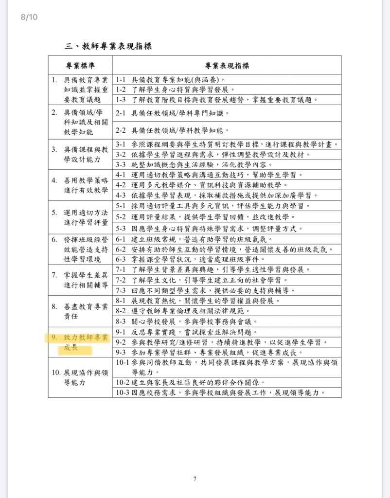 標準 9:致力教師專業成長