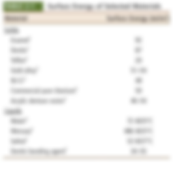 (A)在室溫下牙釉質與牙本質的表面能均較水低