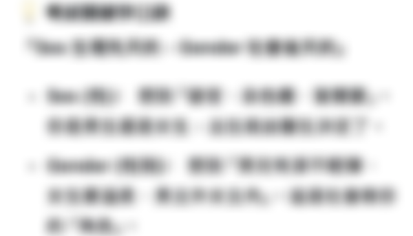 (B)「性別(gender)」是社會環境、文化及教育對於不同的先天性別刻意賦予不同的期望與規範