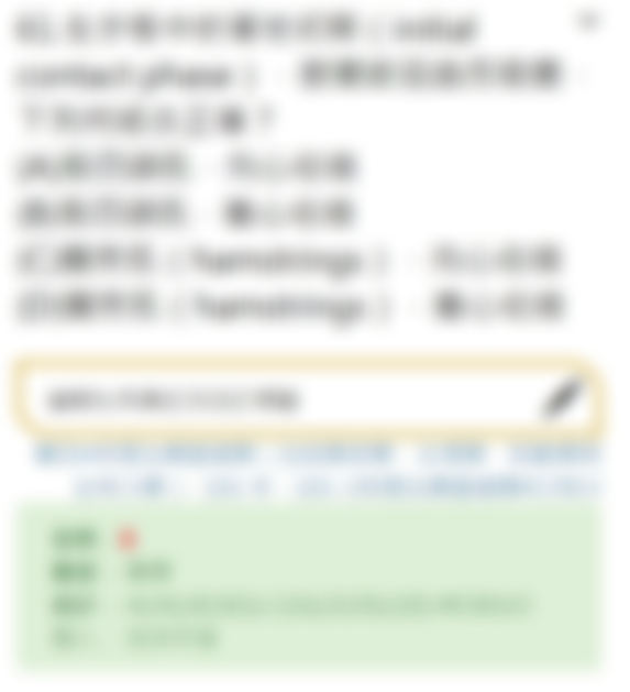 31. 在步態中的著地初期(initial contact phase),膝關節屈曲而吸震,下列何組合正確?