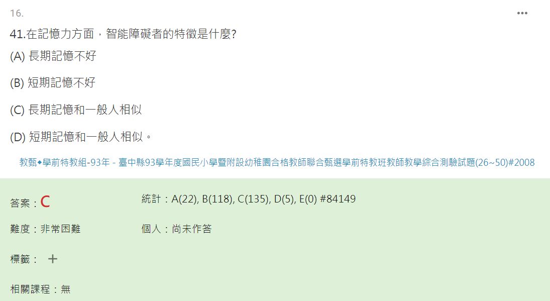 (A)智能障礙學生在長期記憶方面,大致與同儕相似