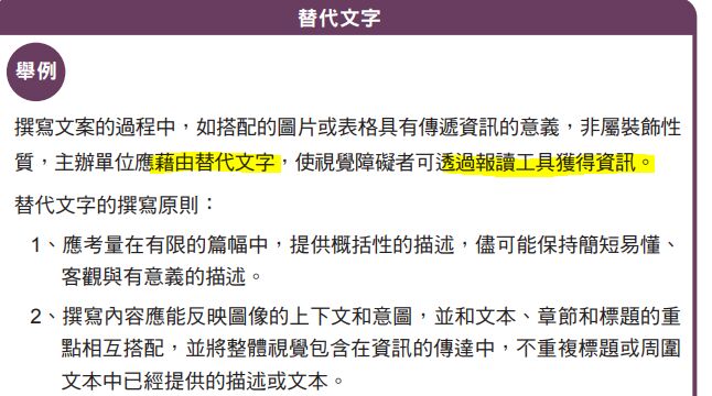 (B) 活動資訊應置於無障礙設計之網站,網頁建議採用圖片為主的版面設計,避免提供純文