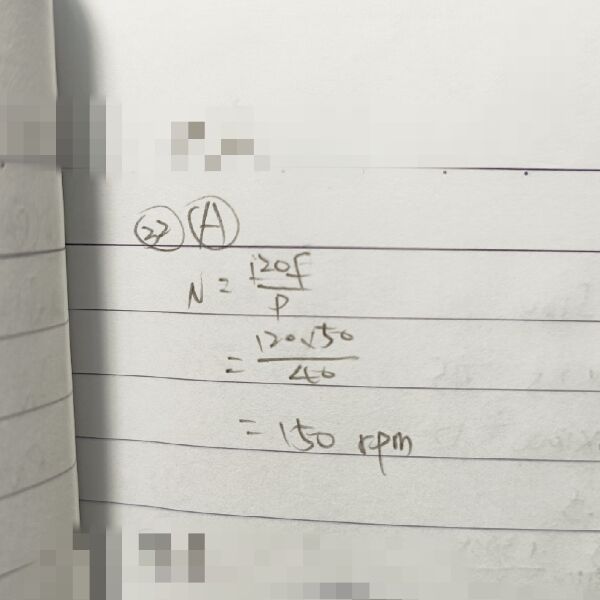 32 三相40極交流同步馬達之供電頻率為50 Hz,其轉速為何?