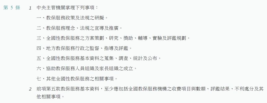 - 其他全國性教保服務之相關事項。