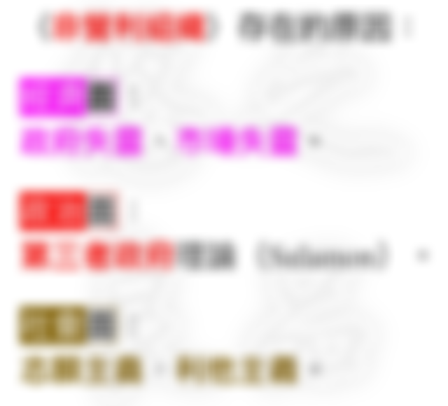 二、薩拉門 ( Salamon ) 認為,「市場失靈」、「政府失靈」理論,視「非營利組織」的「存在」是「次要的」;但是「第三者政府理論」則不認為「非營利組織」僅僅是反應「市場」與「政府」的「失靈」,而是一種「優先機制」( preferred machanism ),藉以提供「集體財」( collective goods ) 與「服務」。