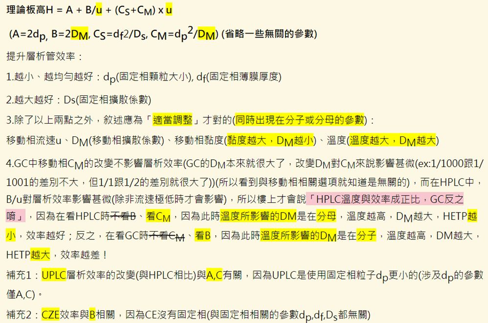 (CZE毛細管區帶電泳因為沒有固定相,所以A=0)