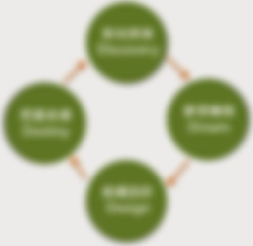 發現(Discovery正向引導)→構想(Dream展望未來)→設計(Design共同建構)→實踐(Destiny調整支撐)→發現