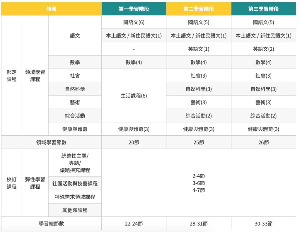 (A)課程類型在國小階段分成部定課程、專業課程、彈性學習課程
