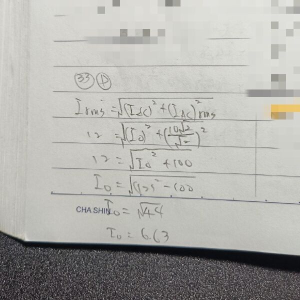 sin2π60t {A},如有效值為 12 A,求 I0 之值約為何?