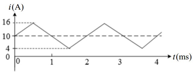 33 圖示電流波形之有效值約為何?(A) 9.24 A (B) 10 A (C) 10.58 A (D) 11.31 A