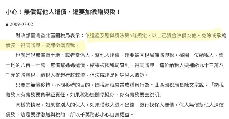 (e.g.子女跟父母借錢 然後父母免除債務 視同贈與行為)
