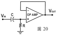 33. 如圖20, R=1kΩ, C= 10 µF,計算 OP 放大器 high pass 電路之 cutoff 頻率響應=?