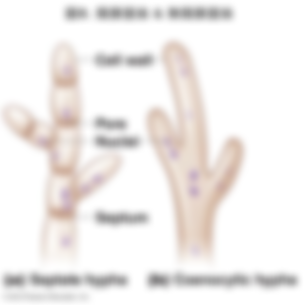 丁.菌絲的構造因種類而異,分有隔壁菌絲(septate hypha)和無隔壁菌絲(coenocytic hypha)