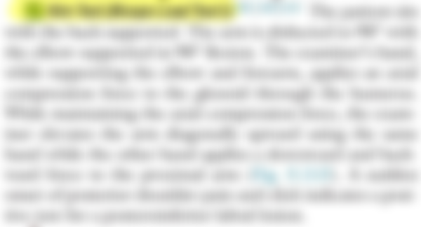 Elevate p’t arm diagonally upward while you’re apply a downward and posterior force with the other hand