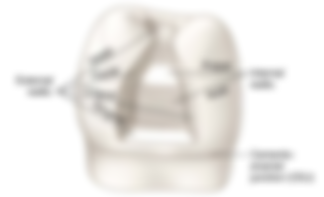 34.如圖所示,傳統近心-咬合窩洞製備(MO tooth preparation)中,下列何者通常不會與牙齒表面(tooth surface)相連?