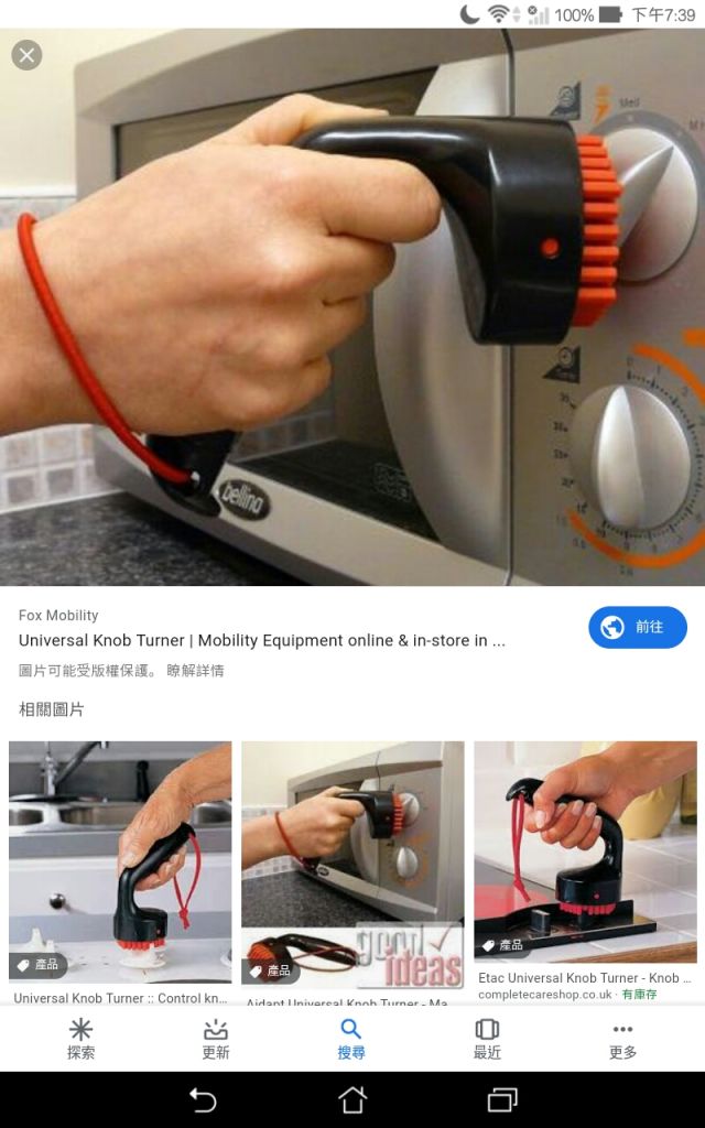 34.手部功能受限之類風濕性關節炎及脊髓損傷病患在使用旋扭式開關之電器、廚房設備時,建議採用何種輔