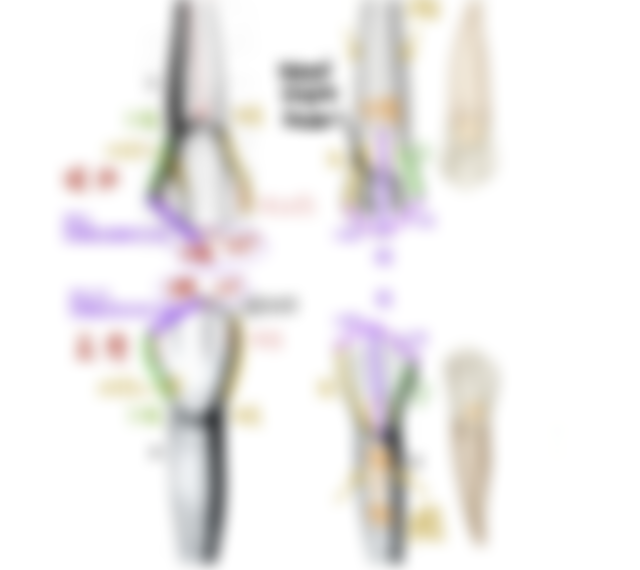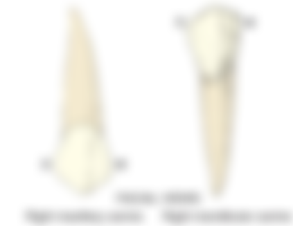 (B)下顎犬齒的近心咬頭嵴較遠心咬頭嵴短,與上顎犬齒相反