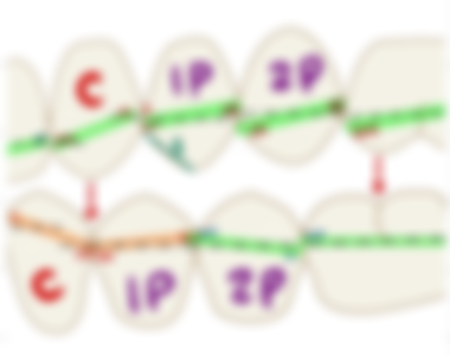 34.由唇側面觀,關於上下顎恆犬齒的敘述,下列何者錯誤?