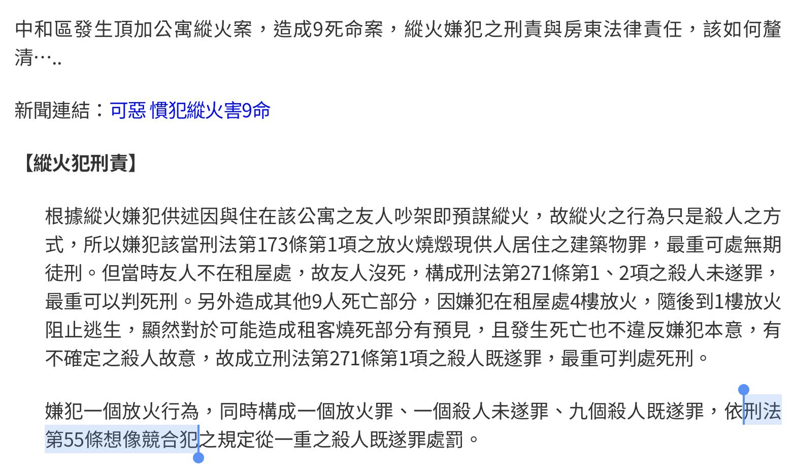 (B)放火罪、殺人未遂罪,兩罪想像競合犯