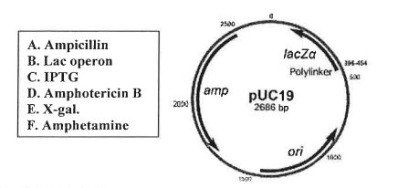34. If you want to clone a DNA fragment into vector shown below, what are required to select clones with insert DNA?