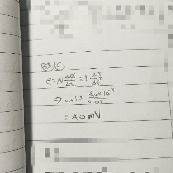 35 電流為 40 mA 之線圈,若其中的電流在 0.01 秒內降為零,線圈之自感為 0.01 H。試求線圈上被感應