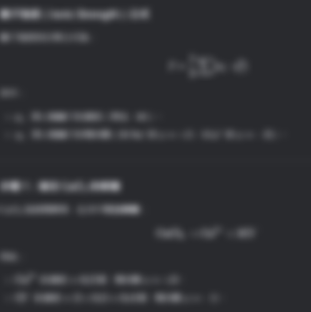 離子強度 = 1/2 * 濃度 * [(陽離子價數)2 * 陽離子數 + (陰離子價數)2 * 陰離子數]