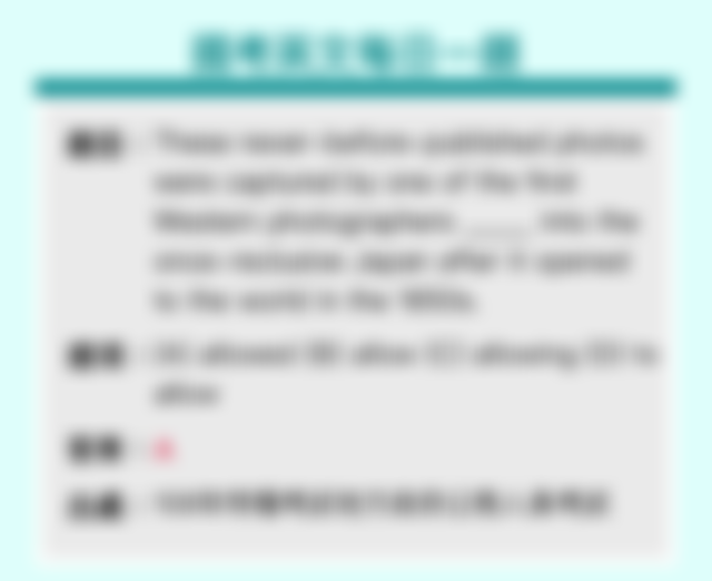 這些從未公開發表的照片是在1850年日本結束鎖國,向世界開放後,第一批____入境日本的西方攝影師所拍攝的。
