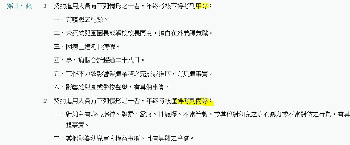 【公立幼兒園契約進用人員之進用考核及待遇辦法】