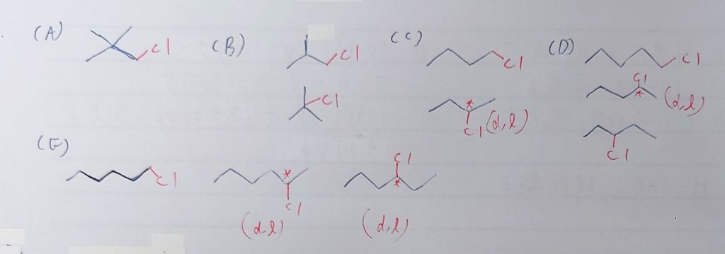 35. 下列化合物中,何者在紫外光照射下與氯氣(Cl2)反應後只會生成一種產物?