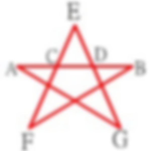 35. 古希臘時代以畢達哥拉斯為首的畢氏學派組織,他們以一個在外面可圍上正五邊形的五角星作為他們的標幟,這五角星形內部隱藏著一個五邊形,若畫出這個五邊形的對角線,又 會產生一個小的倒五角星形,我們說這五角星蘊藏了什麼美感?